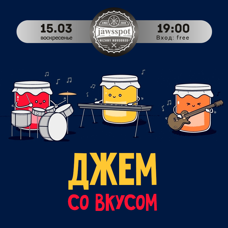 Джем со вкусом - музыканты, импровизаторы, любители музыки и просто слушатели! В этот день есть повод объединиться в один большой оркестр: каждый желающий с хоть-сколько-то навыком играть на любом инстурменте может поучавствовать в создании чего-то невероятного! Импровизации, музыкальные техники, уникальные рифы - все это ждет вас на нашем Джеме!